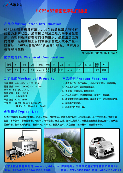 HCP5A83精密鋁板對(duì)雜質(zhì)、堿金屬元素和低熔點(diǎn)元素的嚴(yán)格控制提高了合金的耐蝕性和抗蠕變能力,板材兩面經(jīng)過(guò)銑磨加工呈現(xiàn)出超平精細(xì)表面,尺寸公差標(biāo)準(zhǔn)全球領(lǐng)先,出廠全檢,可雙面貼膜保護(hù),強(qiáng)度超過(guò)歐洲同類產(chǎn)品,厚度規(guī)格覆蓋率高(≥4.5mm)。