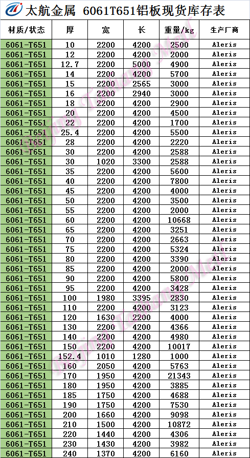 消除內(nèi)應(yīng)力的鋁板狀態(tài)用數(shù)字Tx51表示,如:6061T651、6082T651等。